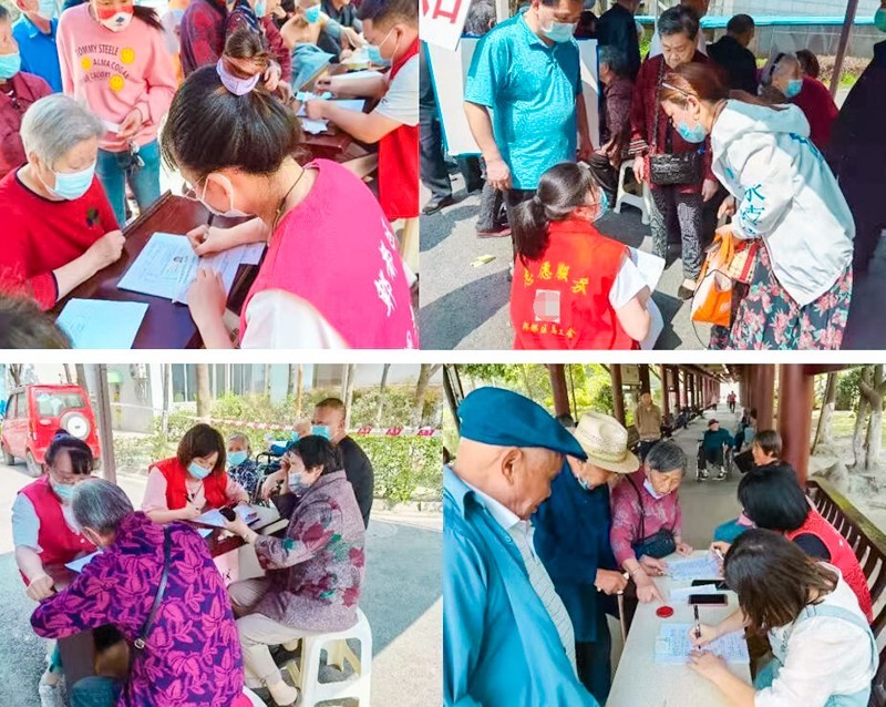 社区党员干部、志愿者变身“暖心接待员”,为前来接种的老人们开展贴心服务,引导他们有序接种疫苗,最大限度减少等待时间。
