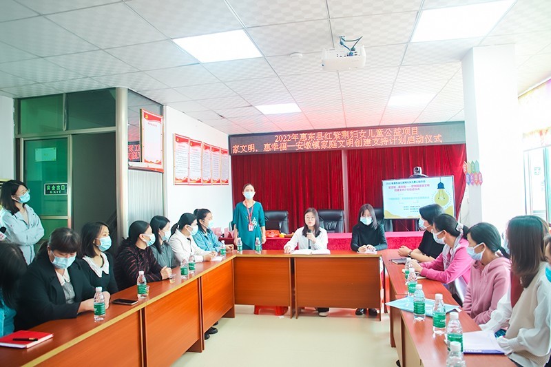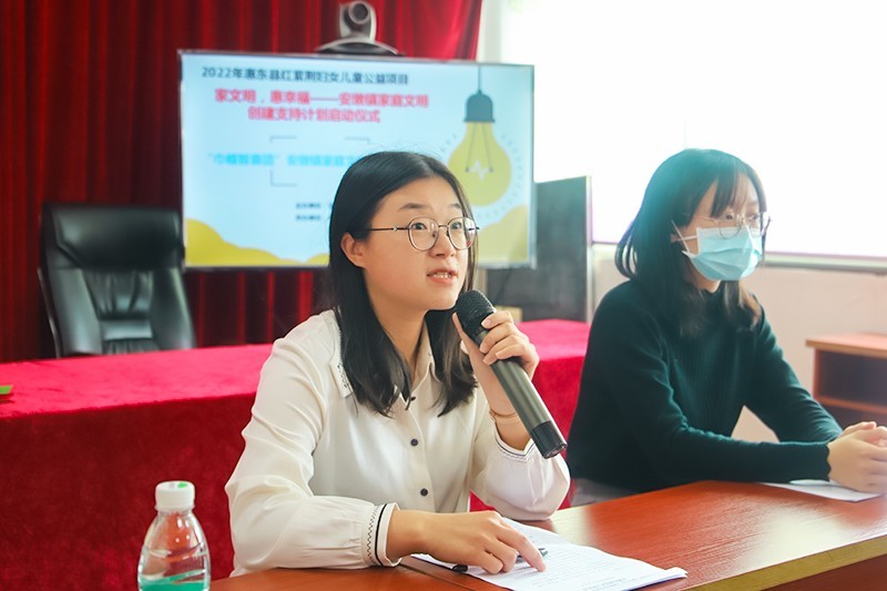 项目启动仪式部分,社工在参与人员落座后,系统地介绍了本次活动的背景和意义,并邀请安墩镇妇联主席巫小清做启动仪式讲话。巫主席要求各级妇联在工作中要找准“小切口”,聚焦群众需求,做好家庭文章,实现大变化。之后,希望各级妇联干部能够支持和配合项目工作,积极挖掘和发现各村和社区的最美家庭,鼓励其参与到项目后续的美丽家庭评选中。并强调在工作过程中,各级妇联与项目承办方相互配合做好家庭文明方面的细化工作。最后宣布家文明,惠幸福——安墩镇家庭文明创建支持计划正式启动。