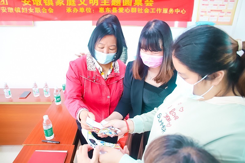 紧接着开展“巾帼智囊团”安墩镇家庭文明主题圆桌会,社工将圆桌会形式和参与式学习模式相结合,系统地设计了破冰、分组、课件分享以及主题分享等环节。