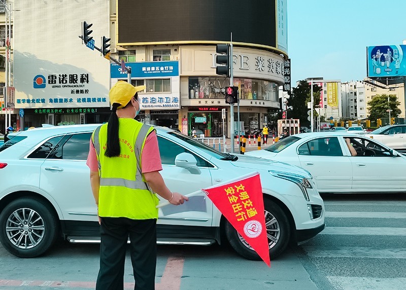 在社工的组织安排下,志愿者在路口通过手举标语牌、宣传教育、文明劝导的形式,协助交警对过往行人、车辆普及《惠州市加强摩托车和电动自行车综合治理的十项措施》,让广大交通参与者充分认识摩电交通安全问题综合整治工作的重要性,重点宣传了自7月1日起电动自行车要悬挂号牌,并告知了具体上牌流程等。活动中,志愿者耐心劝导驾乘摩托车和电动自行车的市民要佩戴安全头盔,同时,倡导车辆礼让行人、喇叭不乱鸣,普及了文明安全出行知识。