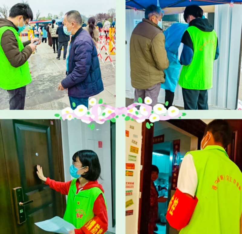 在安居区民政局的指导下,安居区社会组织服务中心的统筹调度下,凤凰街道社工站的社工和志愿者值守菜市场人流量大的路口,进行进出人员登记,进行“四查一询问”,即:查健康码、查行程卡、查核酸检测报告、查体温,询问旅居史;协助社区入户排查是否有外地返遂人员、是否进行核酸检测等。