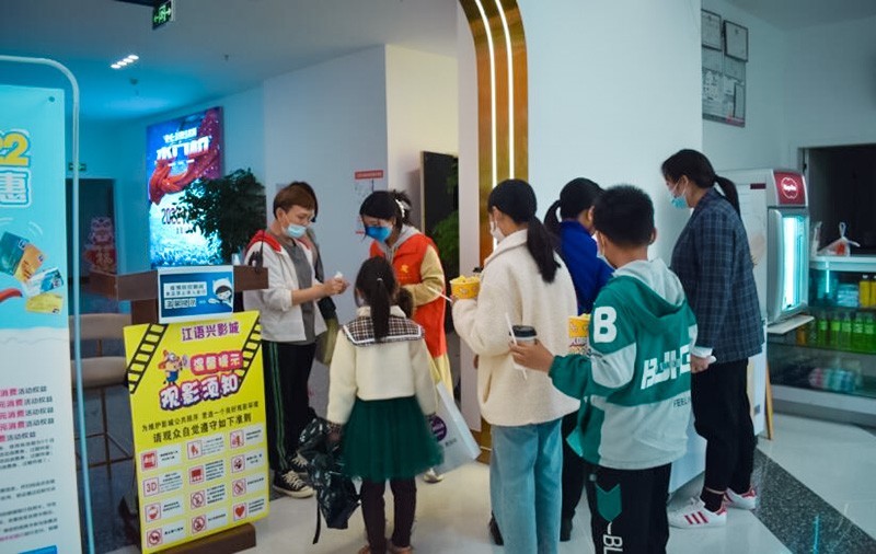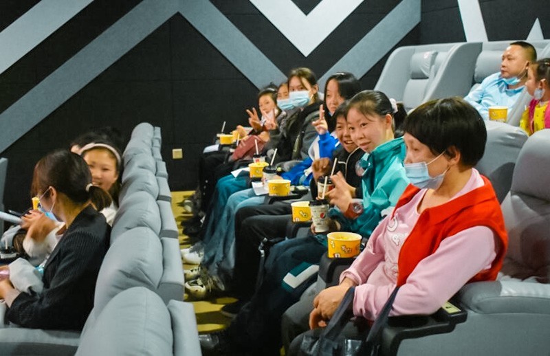 活动签到、领取爆米花和可乐、检票进入观影厅,一系列活动流程在志愿者的组织、孩子和家长的配合下完成的十分顺利,大家进入了观影厅。