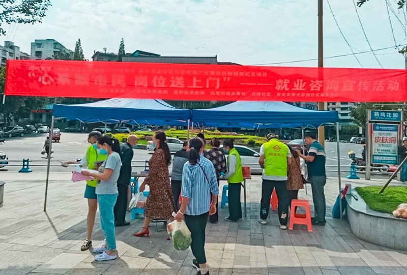 南充市高坪区白塔街道为四川省第二批城乡社区治理试点项目,依托该项目,为新市民就业服务联动辖区内的商家、企业,依托社区为平台,输送就业信息,搭建就业渠道,从而促进异地搬迁、失业居民再就业。此次活动,受到辖区内的居民一致认可,为新市民群体长久的乐业安居、培养其主人翁意识、促进新老居民和谐互融打下了基石。