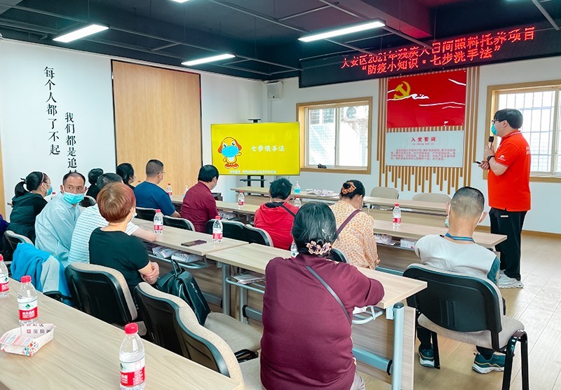 为进一步传递社会对残障人士群体的关怀,增强对疫情防控的了解,引导其自觉加强个人防护意识。近日,由四川省自贡市大安区残疾人联合会主办,大安区龙井街道办事处承办,自贡市社会组织社工和社区治理服务中心执行的大安区2021年残疾人日间照料托养项目——“防疫小知识·七步洗手法”健康主题活动在龙井街道多功能会议室举行,来自辖区的30余组家庭参加了活动。