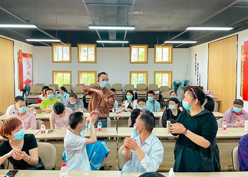 在健康知识讲堂里,社工给参与活动的家庭逐一讲解疫情防控的宣传知识,带领他们学习七步洗手法——内、外、夹、弓、大、立、腕等步骤,手把手带领他们为自己增加一道防护屏障。残障人士及家属聚在一起学习知识、互助体验、实践教学……