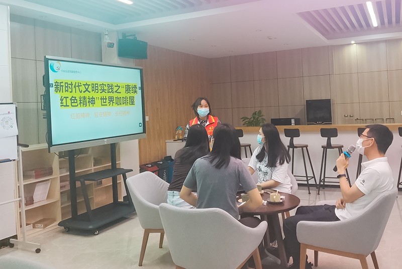 伴随咖啡的香气,大家越聊越酣。一位居民表示:“红船精神是红色革命精神之一 ,指的是开天辟地、敢为人先的首创精神,坚定理想、百折不挠的奋斗精神,立党为公、忠诚为民的奉献精神”。讨论愈加活跃,对于长征精神和延安精神的感想,一位职工表示:“艰苦奋斗、甘于奉献的革命精神是长征精神的重要内容,同样,自力更生、艰苦奋斗的创业精神则是延安精神的典型特征。”另一位居民加入讨论表示:“从他的总结中,我们可以知道艰苦奋斗是长征精神和延安精神的共有基因,身为新时代的我们更应该继承和发扬艰苦奋斗的精神,走好自己的“长征路”!”语毕,大家不禁鼓掌表示赞同,将气氛推上了高潮,大家各抒己见,表达了对祖国的热爱,对革命先辈的敬畏。