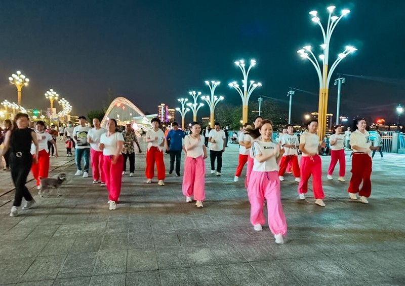 活动中,热身舞让大家活跃了身体,提高了参与积极性。在曳舞老师的带领下,大家进一步学习舞步分解动作,直至掌握动作要领。老师表示,大家才开始有些动作可能会有些生疏,多学习几次,动作就会更加连贯,表演更有力量,舞步也更加整齐,大家每天晚上8点都可以在这个地方来,天天晚上这个地方可以排练、跳舞。