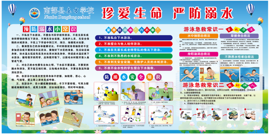 水时而清凉,令人神往;时而柔情,让人沉醉;又时而汹涌澎湃,充满激情。炎热的夏天又如约而至,下水游泳、水中嬉戏成了人们又一件有趣的活动,但同时也存在一定的安全隐患,为了进一步加强校园安全教育,预防和减少溺水事故发生,南部县东方国际学校开展了一系列防溺水安全教育活动。