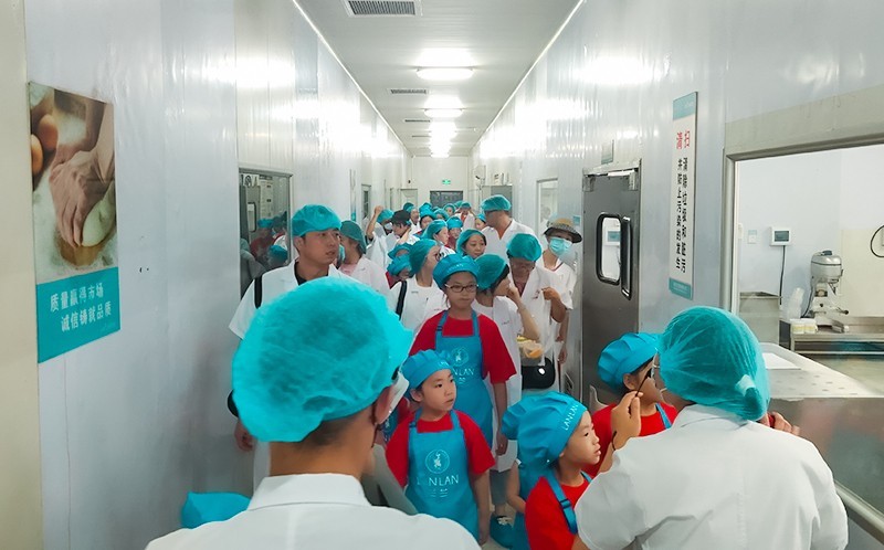 下午,孩子们和家长一起乘车前往兰兰食品工厂。我们穿着专业衣服、防尘帽、鞋套,再经过统一消毒后进入到了生产车间,观看糕点生产环境和过程。之后,在经过糕点师傅的教学后,孩子们和家长开始了亲子DIY蛋糕活动,大家都积极参与,现场欢声不断。