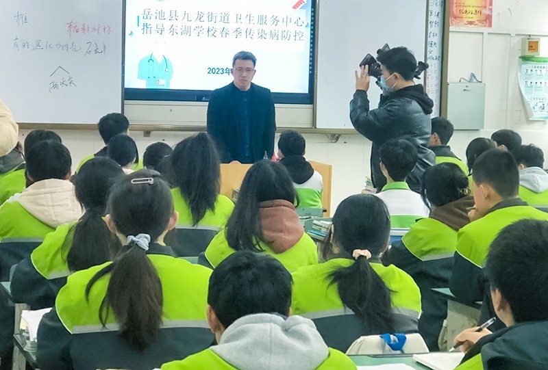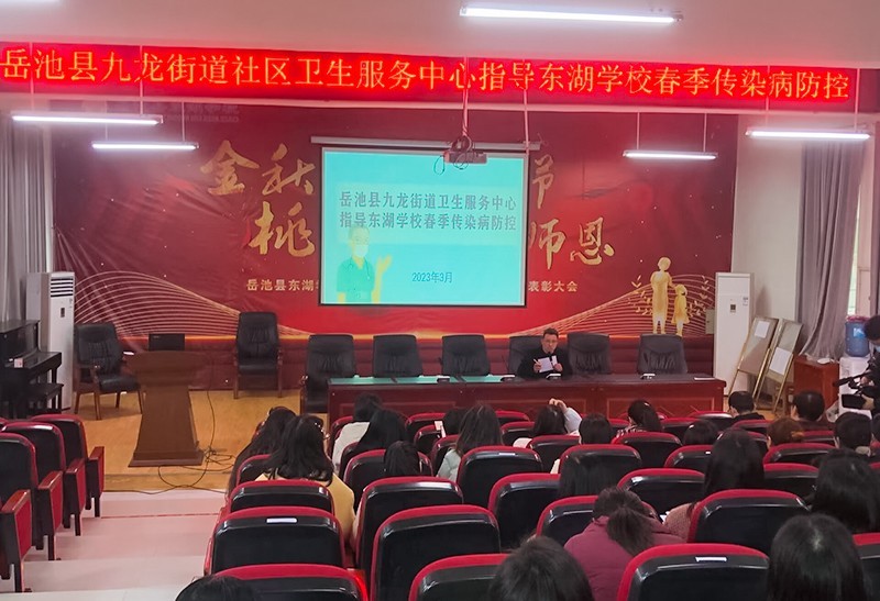 开展专题讲座。该校邀请岳池县九龙街道卫生服务中心公卫科方伟科长走进东湖学校,对师生进行传染病防控培训指导。李科长首先对近期甲流感传染病的成因、传播途径、方式进行了分析介绍,着重讲解了做好学校传染病报告管理,学校要做到早报告、早发现、早隔离、早治疗,及时掌握主动权。