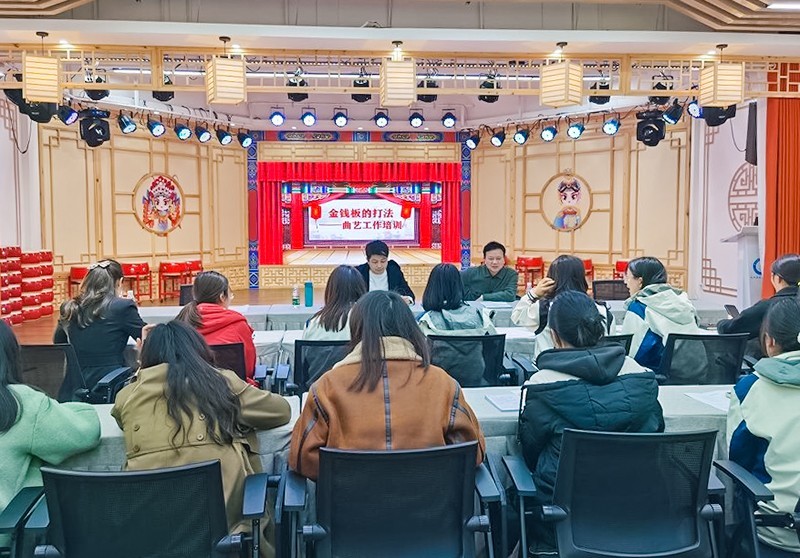 为丰富幼儿园曲艺教学种类,提升教师曲艺素养,更好地让曲艺融入幼儿日常教学,传承曲艺文化。3月8日下午,四川省广安市岳池县东湖幼儿园特邀岳池县文化馆金钱板传承人许亮、王勇两位老师到该园为师生进行了金钱板的打法培训。幼儿园全体教师及部分幼儿参加了培训。