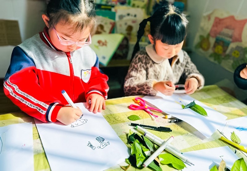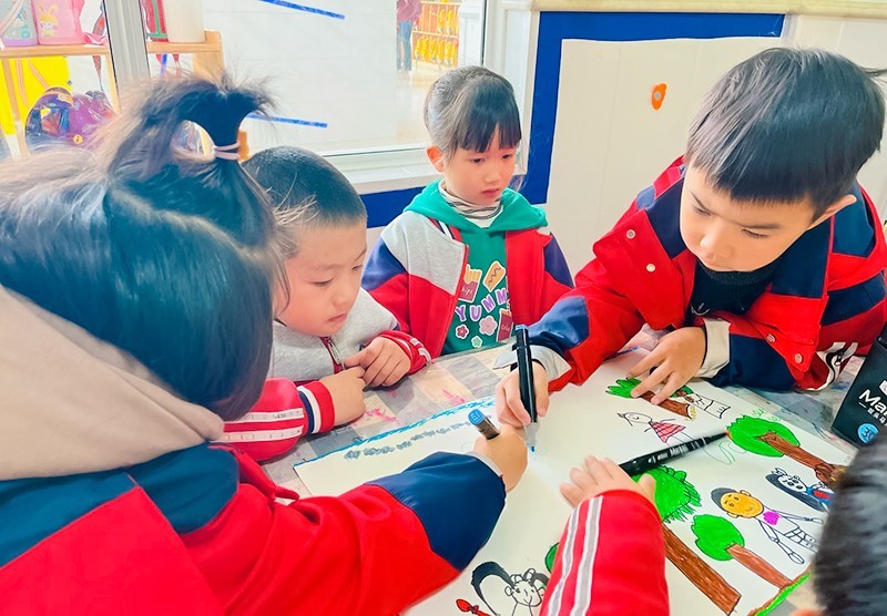 本次活动分年级进行,小班年级围绕“我和小树同成长”展开,孩子们拿着小铲子和小水壶给园内的小树浇水、松土等,随后观察植物生长情况并记录下来,一个个热情高涨。中班年级围绕“绿色家园共创造”开展,孩子们在种植园内种下一颗颗小树苗,趁着春风,感受自然生命的成长变化,用自己的方式增添大自然的一片绿。孩子们还到种植园进行了实地观察,了解到不同树叶的形状、颜色等,制作出漂亮的树叶标签。大班年级围绕“你我携手添绿意”展开,孩子们为绿化环境,制作出小树名牌及护绿宣传海报。他们将心中美好的绿色愿望用五彩的画笔呈现在海报上,勾勒出属于自己的春天。