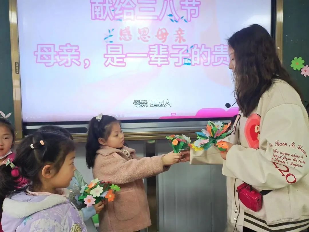 孩子们将自己的祝福送给妈妈、外婆、奶奶、老师,小小的心意,温馨的祝福都能让她们绽放出幸福的笑容。