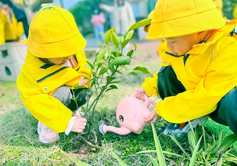 该园教师通过多种方式让幼儿了解植树节的由来,带领他们拥抱大自然,投入到有趣的植树活动中。孩子们化身护林小天使,还为小树设计制作包含爱与责任的树牌标语,用实际行动表达对树木的爱护。