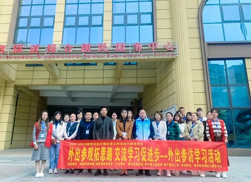为进一步加强民政基层队伍建设,推进基层民政工作的开展,增强基层民政工作的力度,学习社工站建设运营的优秀经验和社区治理工作的先进经验。3月14日,四川省崇州市街子镇社工站组织开展了“外出参观拓思路·交流学习促进步”——外出参访活动。