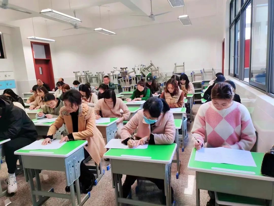 测试中领导们认真巡视,老师们沉着答题,从一张张书写工整的试卷中,我们看到的不仅是用心研读新课标,更是老师们对待教学严谨负责的态度。