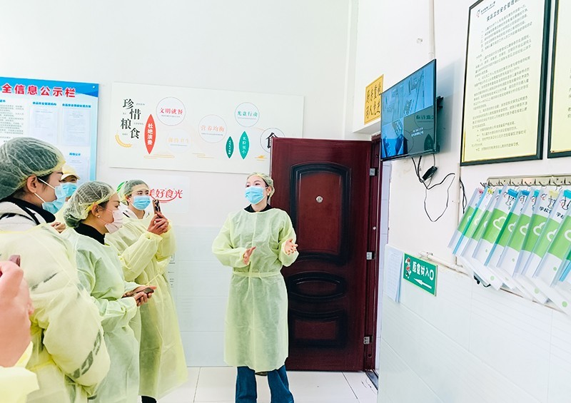 接着,在杨园长的带领下,家长们走进了亮堂洁净的厨房,并围绕环境卫生,清洗消毒、管理台账,食品留样等环节的规章制度和操作要点进行了讲解,同时还详细地介绍了食堂各功能间布局、卫生管理,加工流程、食品存放等情况。在参观的过程中,家长代表们积极地提问、拍照沟通自己的所见所闻、所思所想,对干净整洁、摆放有序、规范管理的食堂整体环境予以高度肯定。