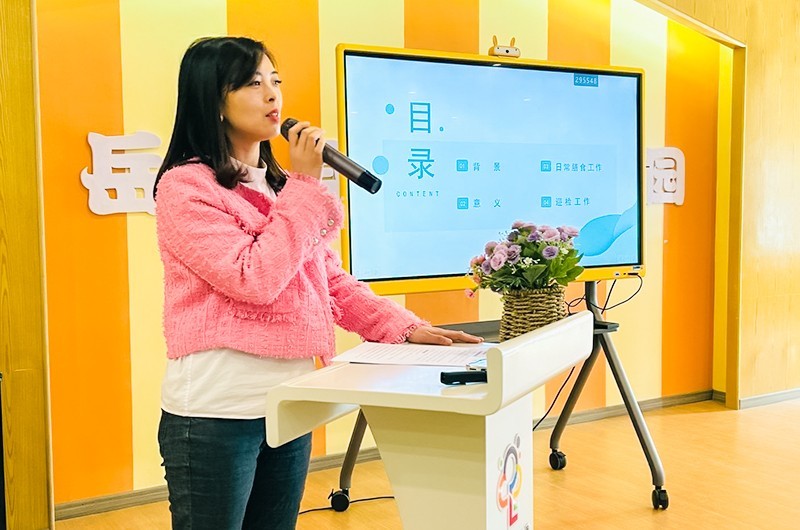 活动前,林主任向家长代表介绍了该园食堂的过程管理,主要从采购关、储存关、从业人员关、加工关、晨检关、食堂卫生关等方面做了详细讲解,让大家对幼儿膳食和厨房管理工作有了初步的了解。