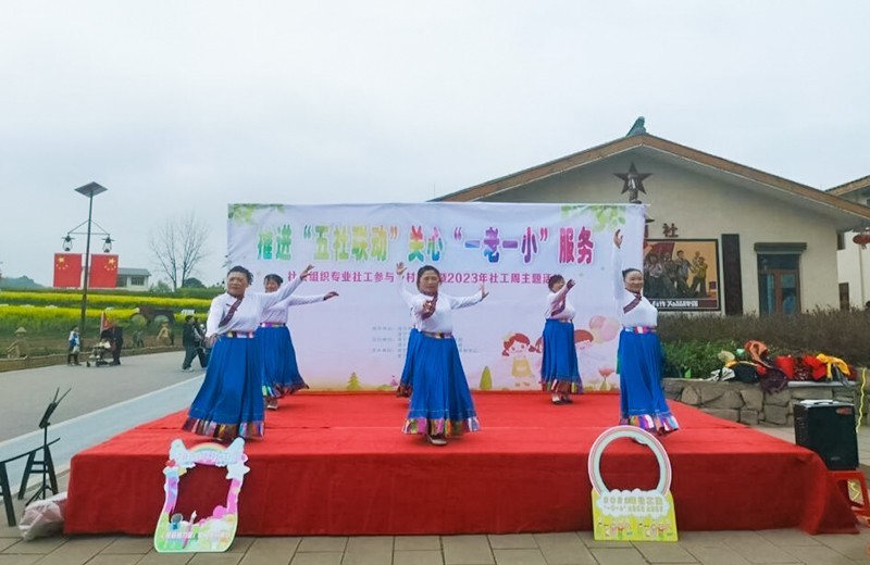为响应民政部关于组织开展2023年社会工作主题宣传周活动,进一步宣传社会工作参与乡村振兴的专业作用,展示社会工作发展成果,充分发挥“五社联动”机制作用尤其是社会公益慈善力量的作用助力乡村振兴。在四川省遂宁市民政局、遂宁市财政局的指导下,由遂宁市安居区横山镇政府和常理镇政府主办,遂宁艺宁妇女儿童社会工作服务中心和遂宁市安居区祥和艺术团承办的“推进五社联动,关心一老一小”主题活动在安居区海龙村开展。