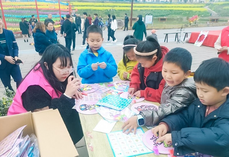 暖心服务区的志愿者们,为来自各地的游客、海龙村及附近的一老一小居民提供便民服务,如当地风土人情介绍、身体义诊等;手工坊区,小朋友们积极动手,开启涂鸦模式,一幅幅生动的作品很快出现在眼前;孩子们不仅主动将这些作品在现场开展义卖,还带来了许多自己的很多玩具、书籍来进行义卖,义卖的收入也全部进入“海龙凯歌”乡村振兴慈善基金,用于一老一小关爱服务及弱势群体关爱服务等;在我们的宣传区,社工通过发放社会工作宣传单页,讲解宣传社会工作基本知识,展示社会工作服务成果等方式,推动形成人人关心、支持社会工作的良好氛围;欢乐游戏区,爱心圈圈乐、趣味气球等游戏吸引着大家的目光,大家积极参与,在游戏的过程中进一步感受社会工作的魅力。
