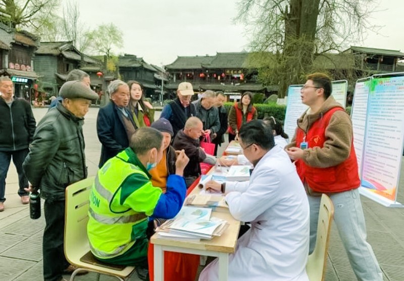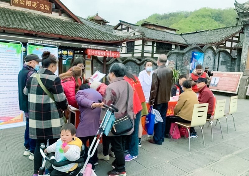 活动现场,友爱社工在街子古镇银杏广场设立了宣传台和志愿服务台,其中志愿者不仅发放了街子镇社工站环保宣传袋、惠民政策宣传单和宣传水杯,还摆放了老年权益保护法和儿童权利公约宣传展架。活动中,志愿者首先向社区居民讲解城乡低保、临时救助、特困人员救助供养等方面的政策内容后,居民们还可以进行免费义诊,有测量血压、疾病问题讲解、中医把脉等。此次义诊活动,由街子镇社工站链接成都市青城山医院进行。