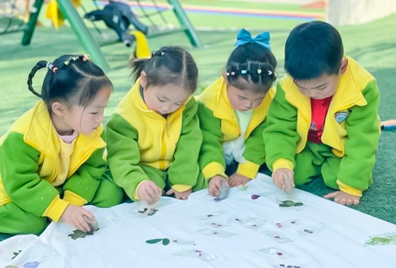 小朋友们在农业园里寻找春天的痕迹。温暖的风儿吹开了花蕾,吹绿了小草。赏花海,闻花香,观花色,用他们的五官来感受这一年一次的春季之约。他们沐浴在春天和煦的阳光里,并用自己灵巧的小手以画画、植物拓印等方式来留住春天的颜色。