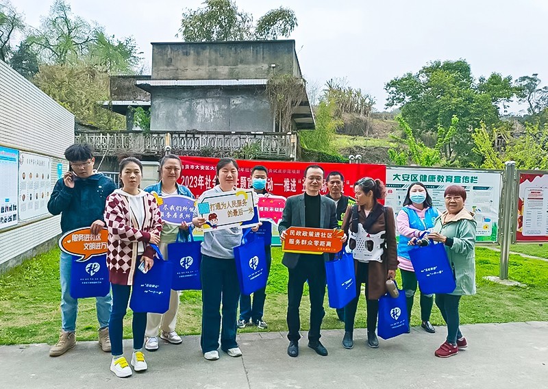 走进三月,迎来了第十七个国际社工日。为普及社会工作专业知识,展示社会工作发展成果,推动社会工作高质量发展。四川省自贡市大安区大安街道社工站自3月20日开始,为期一周的时间分别在大安街道辖区各社区通过多阵地、多渠道开展一系列宣传活动,围绕“推进‘五社联动’关爱‘一小一老’”为主题,以人流集中区域、党群服务中心等为阵地,通过展架宣传、分发宣传扇、环保袋、纸巾等,以悬挂横幅、文字标语、漫画、现场讲解等形式向居民群众普及社会工作的服务内容、专业方法、服务对象等内容,让大家进一步了解社会工作是干什么的、社工可以为居民做什么等相关知识,大力弘扬“奉献、友爱、互助、进步”的志愿服务精神,为社会工作事业发展营造积极的社会氛围,增进群众对社会工作者和社会工作的认知与支持。