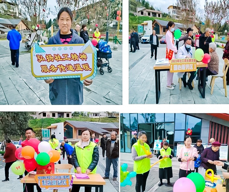 同时活动现场,为了让居民进一步感受社会工作的魅力,增强邻里互动,遂宁春晖社工和各社区社会组织(社会组织)精心准备了游园活动:暖心服务区,为老年人免费检查身体;手工体验区为小朋友们带来了新奇手工制作;欢乐游戏区为村民的枯燥生活带来了别样乐趣,现场参与的村民积极参与、全心投入、共享此刻;政策宣传区,让更多的村民了解了社会工作,认识了社会工作对乡村振兴以及特殊人群服务的重要性。
