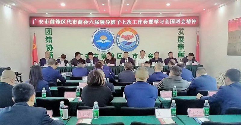 民生在线四川广安3月27日讯(易青海、彭建强)3月26日上午,四川省广安市前锋区代市商会召开党支部会议,专题学习贯彻全国“两会”精神。代市商会党支部成员及会员代表参加学习会。广安市工商联非公有制经济政策服务中心主任、前锋区代市商会党支部党建工作指导员柏教平主持会议并讲话。