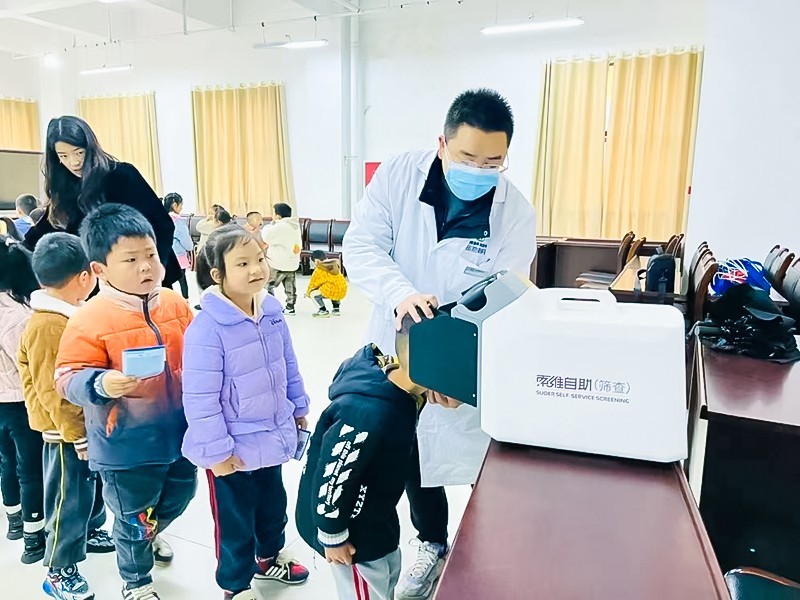 眼科医生和蔼可亲的为小朋友们仔细做视力检查,根据小朋友的年龄和视力情况进行诊断,并认真、详细做好相关记录。检测完毕后,医生对每位小朋友的检测结果进行反馈,并建议视力异常的幼儿及早就医复查。