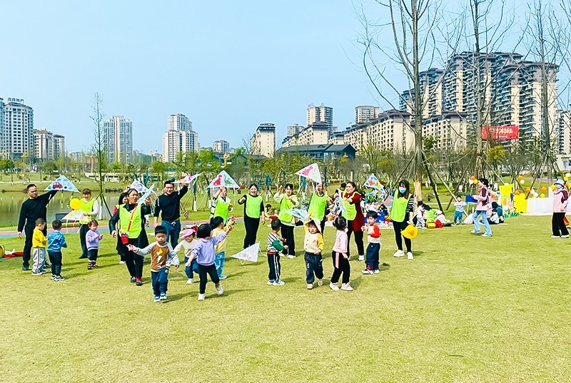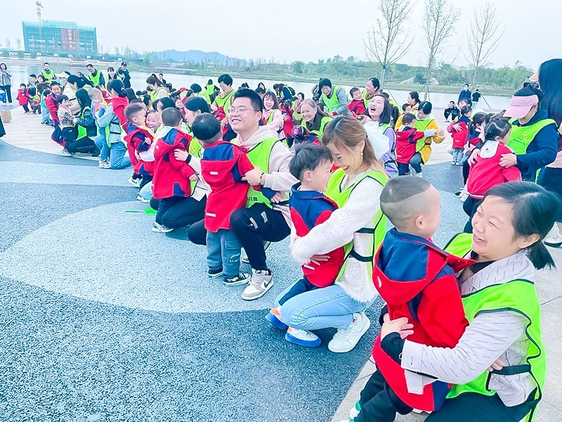 活动在园长妈妈的致辞中拉开了序幕。活动共五个环节。首先在龙湖广场进行了热身舞蹈和热身游戏环节。接着是绕湖亲子远足,孩子和家长们有序排队依次按规则通过了对孩子们饱含真切祝福的"拍拍乐"、"节节高"等游戏关卡。