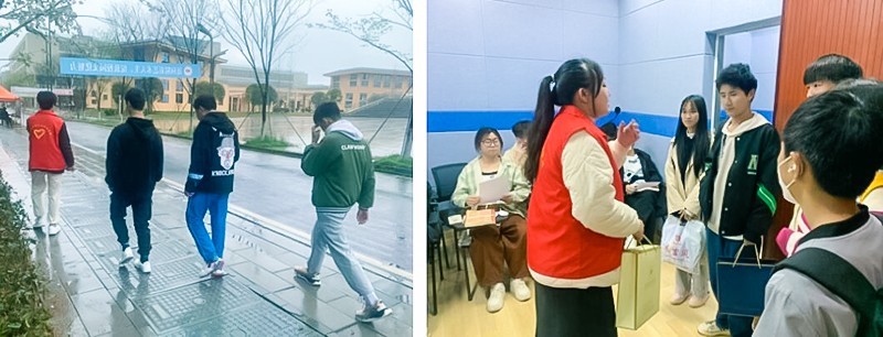 为给考生提供及时、周到、热情的服务,该校在考试前提前制作了楼层分布图、消防疏散图、考室分布图、路口警戒线等。同时学校还在各楼层及拐角处粘贴了多个引路指示标志,并安排志愿者全程引导、服务学生。