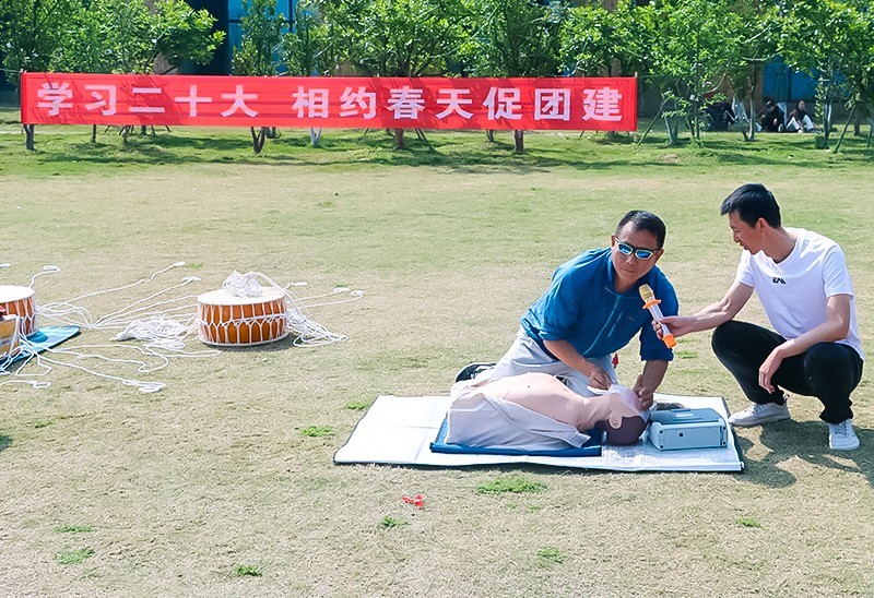 随着动感的音乐响起,本次团建活动正式拉开了序幕。首先,学校组织相关专业人员为全体教职工讲解了“心肺复苏”实操课程,从环境评估,到胸外按压,再到人工呼吸,严格按照标准步骤与动作进行了演示,有力提升了大家的急救意识。