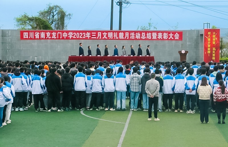 为进一步巩固学校“三月文明礼貌月”系列活动有效成果,弘扬雷锋精神,强化文明意识,持续推动学校学生养成良好的行为习惯和文明礼仪,4月3日,四川省南充龙门中学在田径运动场隆重举行“三月文明礼貌月”活动总结暨表彰大会。学校副校长张洪波、工会主席万彩霞及相关科室干部出席了大会,全体班主任以及全体同学参加了大会。