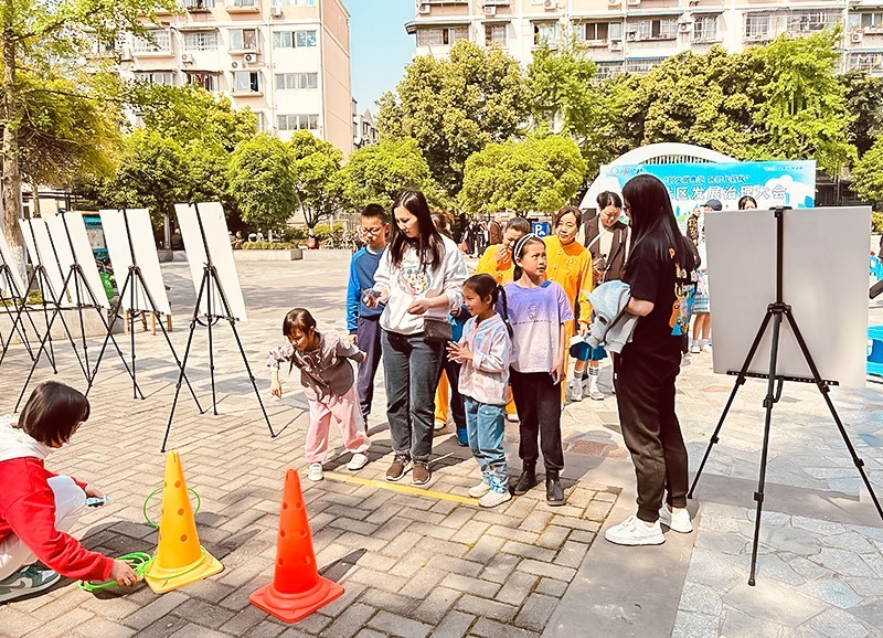 舞台区域的展现结束后,游戏区域的探索接踵而至。区域设置将社区治理和“爱成都,迎大运”充分结合,吸引了不少居民参与,活动现场秩序井然,一片欢声笑语。