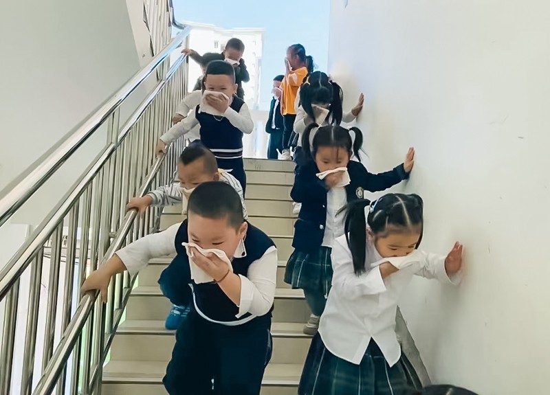 随着警报声的响起,演练活动正式拉开序幕,孩子们在各班老师的带领下有序撤离教室,各岗位人员也快速各就各位,协助疏散幼儿撤离到了安全避险场所。疏散结束后,蓝天救援队队员为余幼师生进行安全宣讲,并示范讲解了灭火器的正确使用方法。