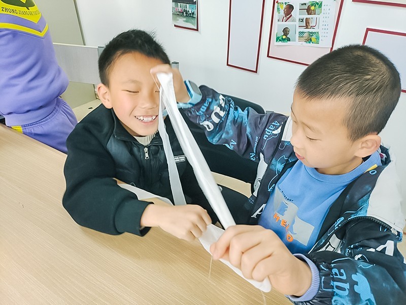 完成预防烧烫伤的知识学习后,社工带领小朋友们进行实操环节。社工演示包扎的正确手法并进行相关讲解,随后,由小朋友们进行学习操练。“我学会啦!”小林高兴地举起手向社工展示自己的学习成果。