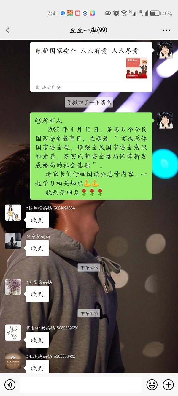 班级教师结合幼儿年龄特点,通过观看微视频、安全儿歌、绘画等多种形式,使国家安全的意识在幼儿心灵中萌芽,让幼儿感知国家安全的重要性,牢记“国家安全,人人有责”的神圣使命,从小厚植爱国情感,并增强自我保护能力。