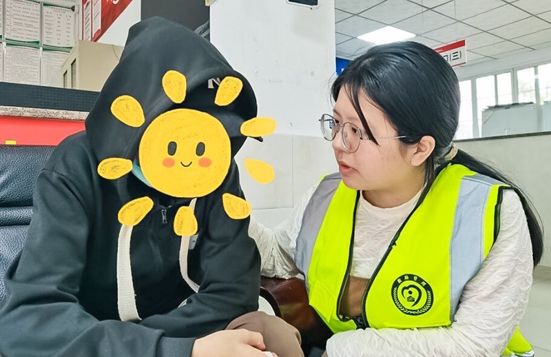 雨后的街道,空气格外清新,经过与小张交流知晓,父母离异,自己由父亲抚养。正是青春年少时,也许是受了委屈,也许是没有人理解他,也许是犯了错误,小张当即流出了泪水。工作人员和志愿者耐心听着小张的诉说,同时给予他温暖,让他感受到关心关爱。
