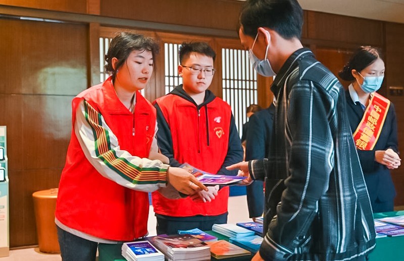 近日,中国邮政储蓄银行南充市分行、南充市金融团工委、南充市反诈中心和南充市青年企业家商会共同开展了“送金融知识进商会”活动。南充电影工业职业学院团委组织团员青年开展了本次活动的志愿服务工作。