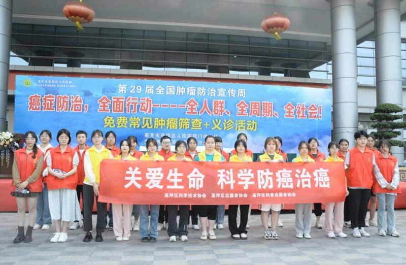 4月15日,四川省南充市癌防中心、高坪区科协、区卫健委、区疾控、区红十字会、区人民医院、区志愿者协会、区科普志愿者协会共同开展了第29届全国肿瘤防治宣传周“癌症防治 全面行动——全人群 全周期 全社会”科普活动。市癌防中心主任别俊、区卫健委医政股股长周爽、区人民医院院长贾捷登、区疾控中心慢病科舒念等出席活动。