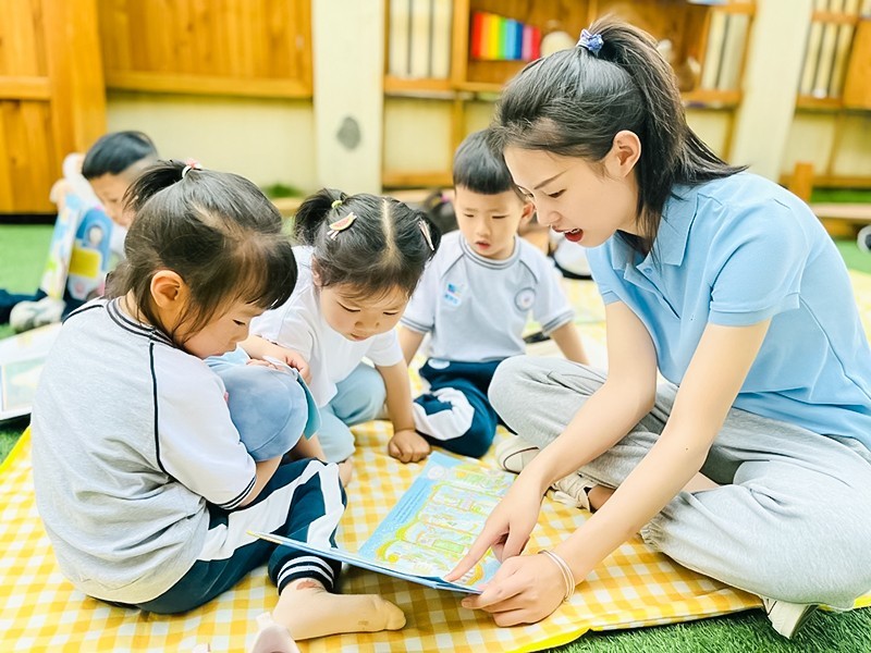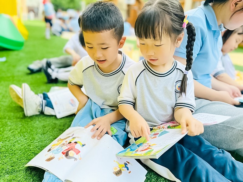 圆圆班——“悦”读伴成长组织幼儿在室外阅读,老师为活动创设舒适愉悦的阅读环境与丰富的阅读种类,供孩子们自由选择进行阅读,体验与同伴一起阅读的快乐。阅读是最好的陪伴,倡导家长和孩子一起阅读绘本故事,共享亲子快乐时光的同时也可以帮助孩子养成良好的阅读倾听习惯。