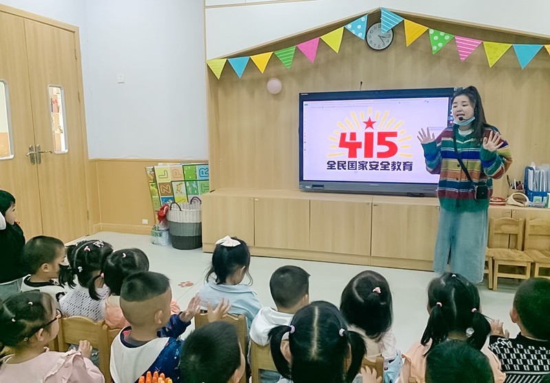 幼儿园充分利用电子屏、公众号等媒介,加大对全民国家安全教育日的宣传力度,积极向教师、家长和幼儿进行安全知识宣传,营造全园共筑国家安全屏障的浓厚氛围。小班根据幼儿的年龄特点,以国家安全为切入点,通过故事的形式让幼儿初步了解什么是国家安全。中班通过观看视频的方式,让孩子们知道,维护国家安全,从保护自己开始。大班通过儿歌的方式,让孩子们明白有国才有家,有家才有我们幸福的生活,在幼儿心中播下一颗维护国家安全的种子。