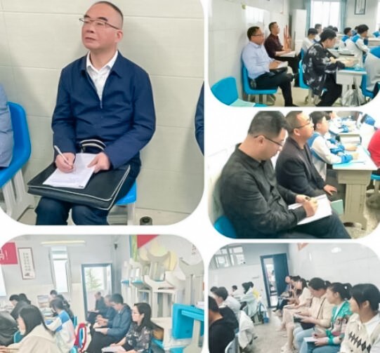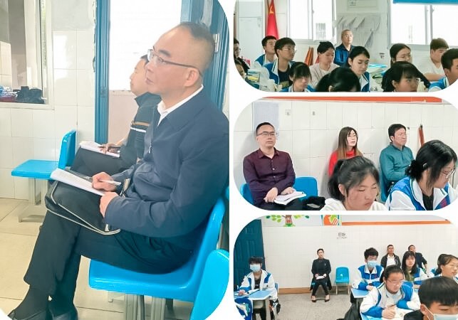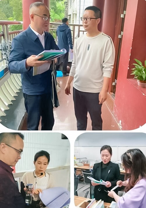 听课小组在听课过程中时而凝神沉思,时而抬头观察,时而奋笔疾书,细心捕捉着课堂上的每一个精彩细节。在评课交流环节,听课小组及时与授课教师进行了交流探讨,对作业批改、教案书写等进行了检查,引导教师反思课堂,优化教学行为,落实教学常规。