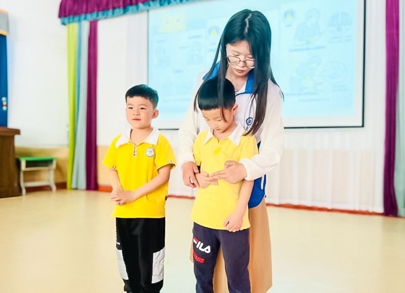 活动过程中志愿者们用简单易懂、生动有趣的方式讲述春季流感预防及应对措施、海姆立克急救法、烫伤烧伤应急处理,如何保护眼睛、爱护牙齿,为什么要打疫苗等一系列医学小知识。