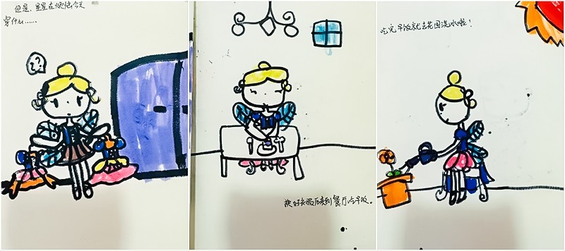 小班幼儿在家长的陪伴下共同阅读自己感兴趣的图书,一起沉浸在书籍的海洋里;中班幼儿在老师的带领下学习如何制作书签,体会自主动手制作的喜悦;大班幼儿用折一折、订一订、剪一剪、贴一贴、画一画等方法将自己心中最真、最美、童话般的故事制作成一本本珍爱的小书,每本图书、每个故事都展现了孩子们纯真的童心世界。