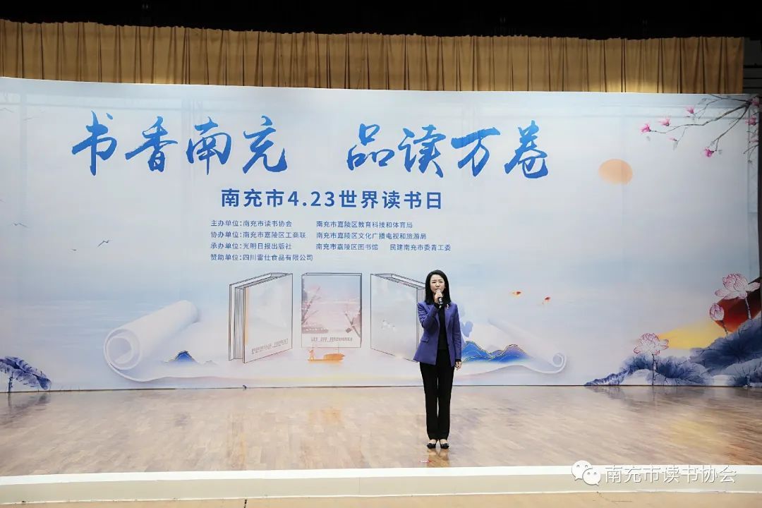 4月23日是第28个世界读书日,由南充市读书协会、南充市嘉陵区教育科技和体育局主办,南充市嘉陵区文化广播电视和旅游局、南充市嘉陵区工商联协办,光明读书会、南充市嘉陵区图书馆、民建南充市委青工委承办的“书香南充·品读万卷”南充市423世界读书日活动在嘉陵会堂举行。