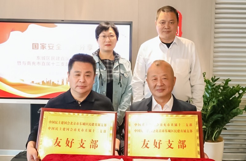 4月22日,民建南充市直属十二支部与民建北京市东城区直属支部在北京市洛克时代中心举行缔结友好支部签约仪式。中共中央统战部培训中心主任刘海富、民建北京市委专职副主委苏健、民建北京市东城区委常务副主委张小梅,民建南充市委副主委张宏标出席签约仪式。民建北京市东城区直属支部主委孙鹏、民建南充市直属十二支部主委王元刚及双方支部会员代表参加签约仪式。