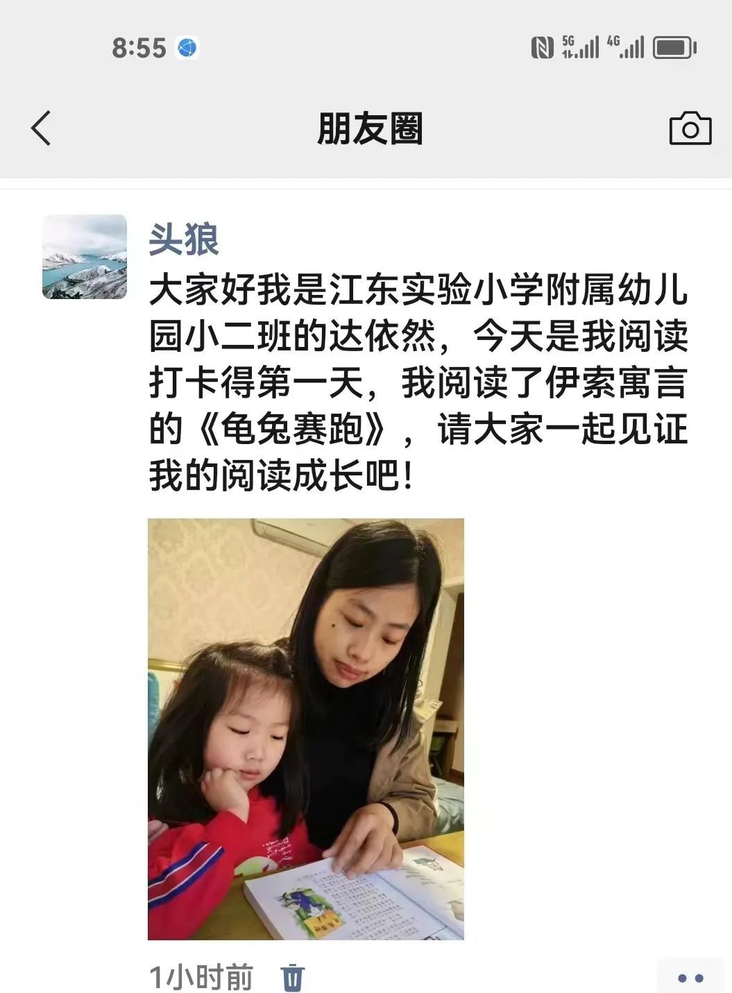 家长陪伴孩子阅读,把幼儿自己诵读、讲故事以及亲子共读的录音分享到班级群,寻找最美的声音。