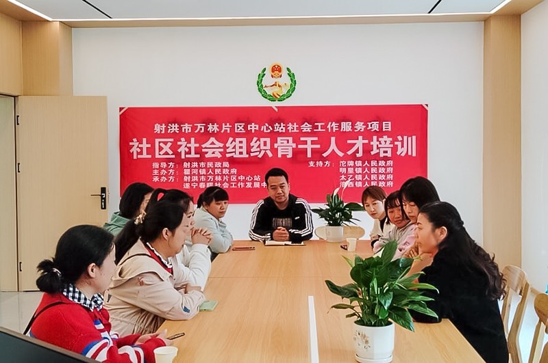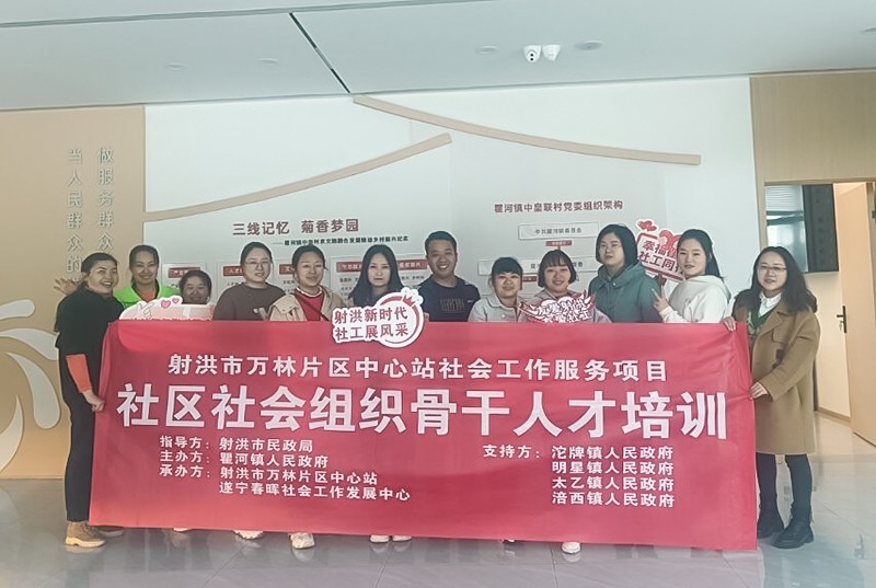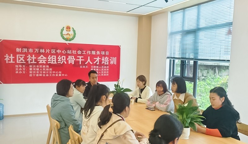 为提升社区社会组织骨干人才能力和水平,发挥社区社会组织在创新基层社会治理和乡村振兴中的积极作用,在射洪市民政局的指导下,万林片社会工作中心站联合瞿河镇政府、遂宁春晖社会工作发展中心开展社区社会组织骨干人才培训。瞿河镇、明星镇、沱牌镇、太乙镇、涪西镇各社区社会组织骨干人才10余人参加培训。